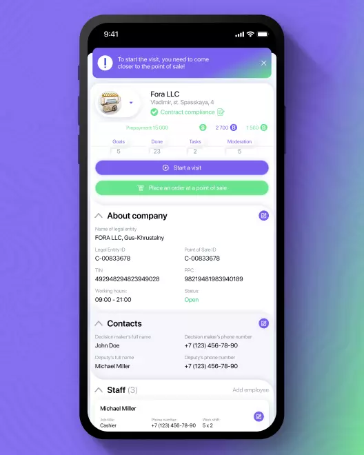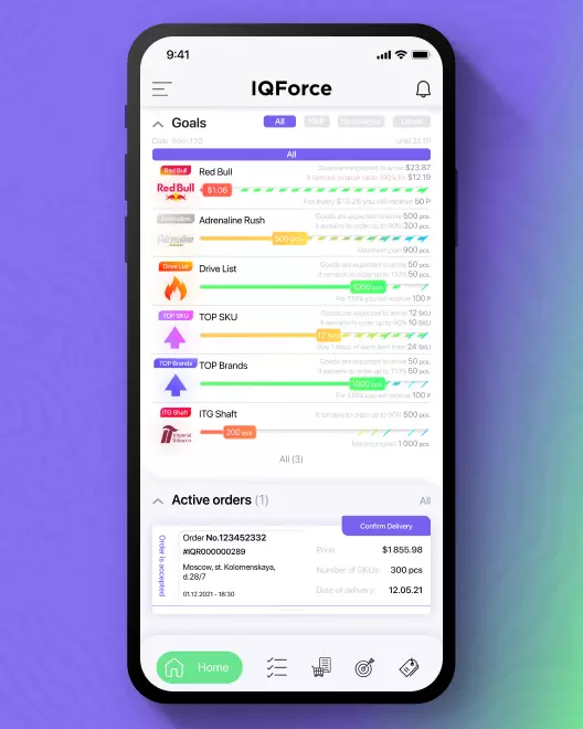 IQ Force allows you to combine both sales agents and their clients in a common ecosystem, allowing you to synchronize the work of sales agents and outlets, information on payments and logistics, as well as all incoming and outgoing documentation.