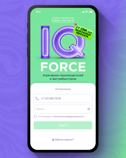 Коробочное решение IQ Force устанавливается производителю/дистрибьютору — web, адаптив, мобильное приложение (IOS / Android).