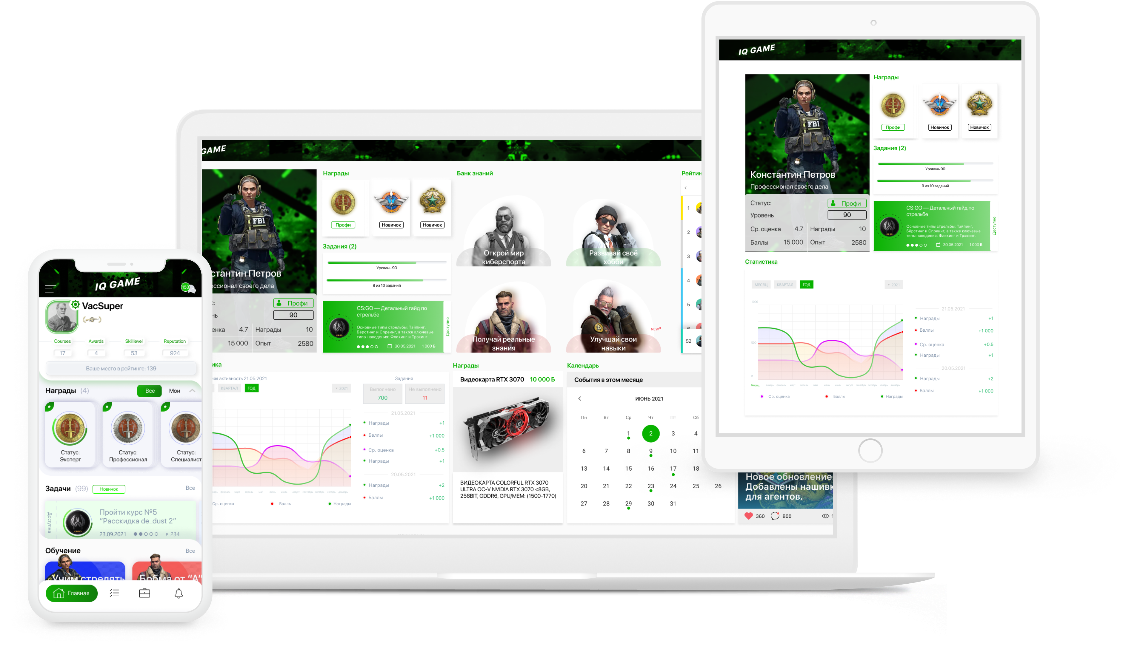 IQ Game — это единая экосистема, интегрирующаяся с соц. сетями и игровыми платформами (STEAM, FACEIT, FASTCUP) и предоставляющая тысячи различных вариантов обучения для проработки слабых мест игрока. Участники могут самостоятельно загружать контент на площадку, продавая авторские курсы и монетизируя свои знания и навыки, а также зарабатывать на продаже индивидуальных тренировок и менторстве для начинающих игроков.