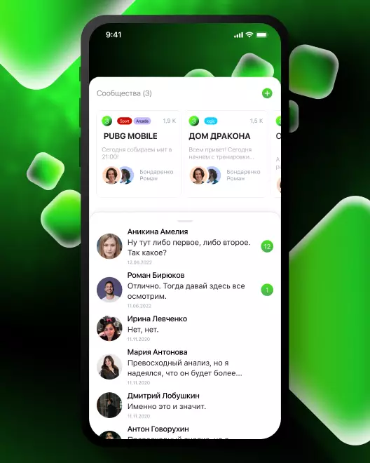 • Индивидуальные и групповые чаты