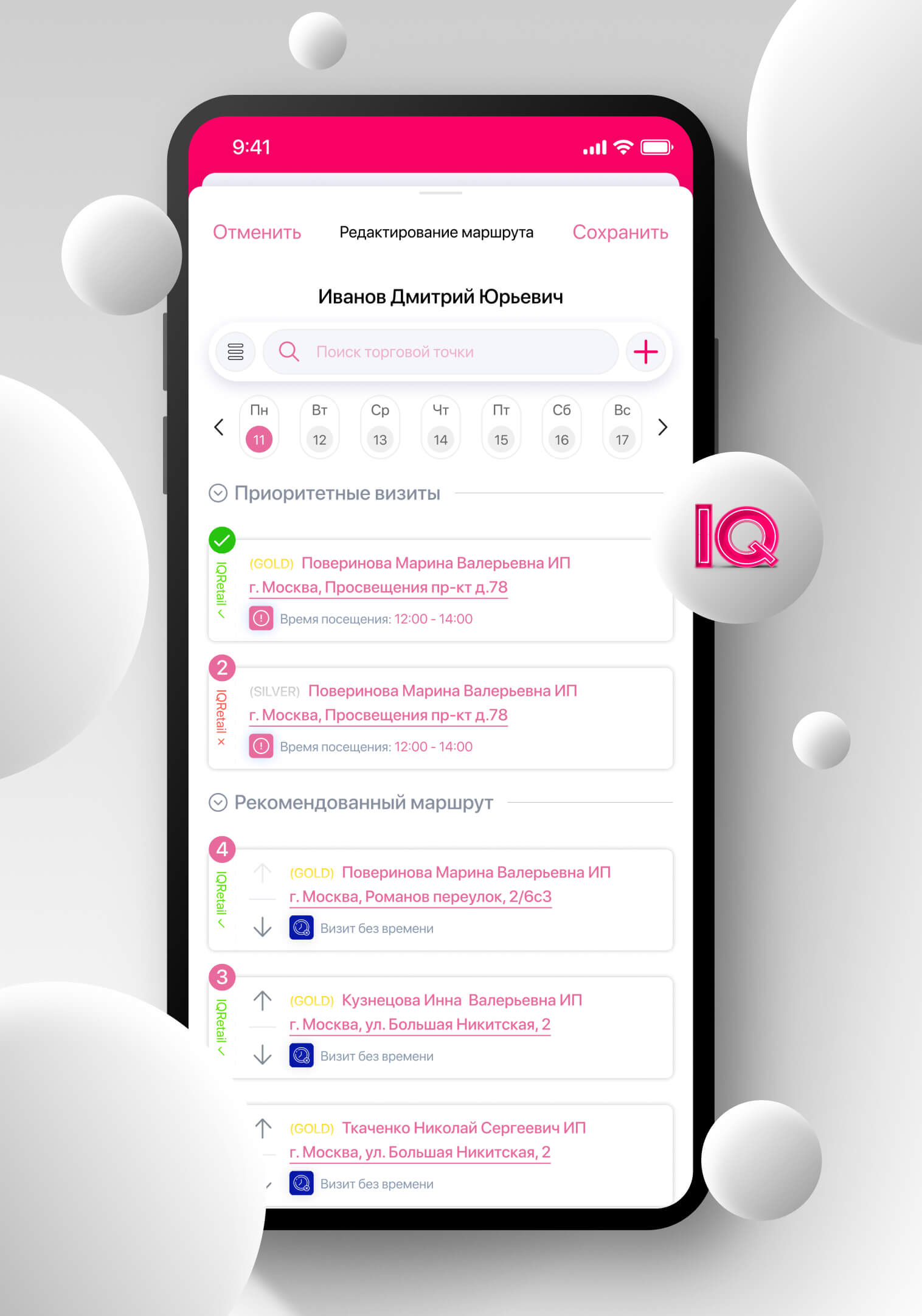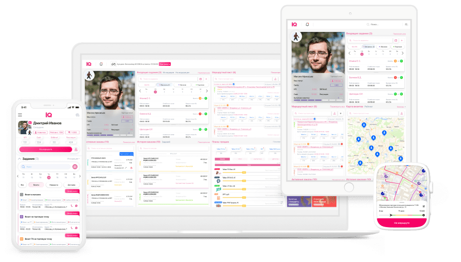 IQ Geo Tracking is a ready-made software module for building the optimal delivery route in any business area. The module optimizes and takes control of the work of any field employees: sales agents, drivers and foot couriers, freight forwarders, etc.