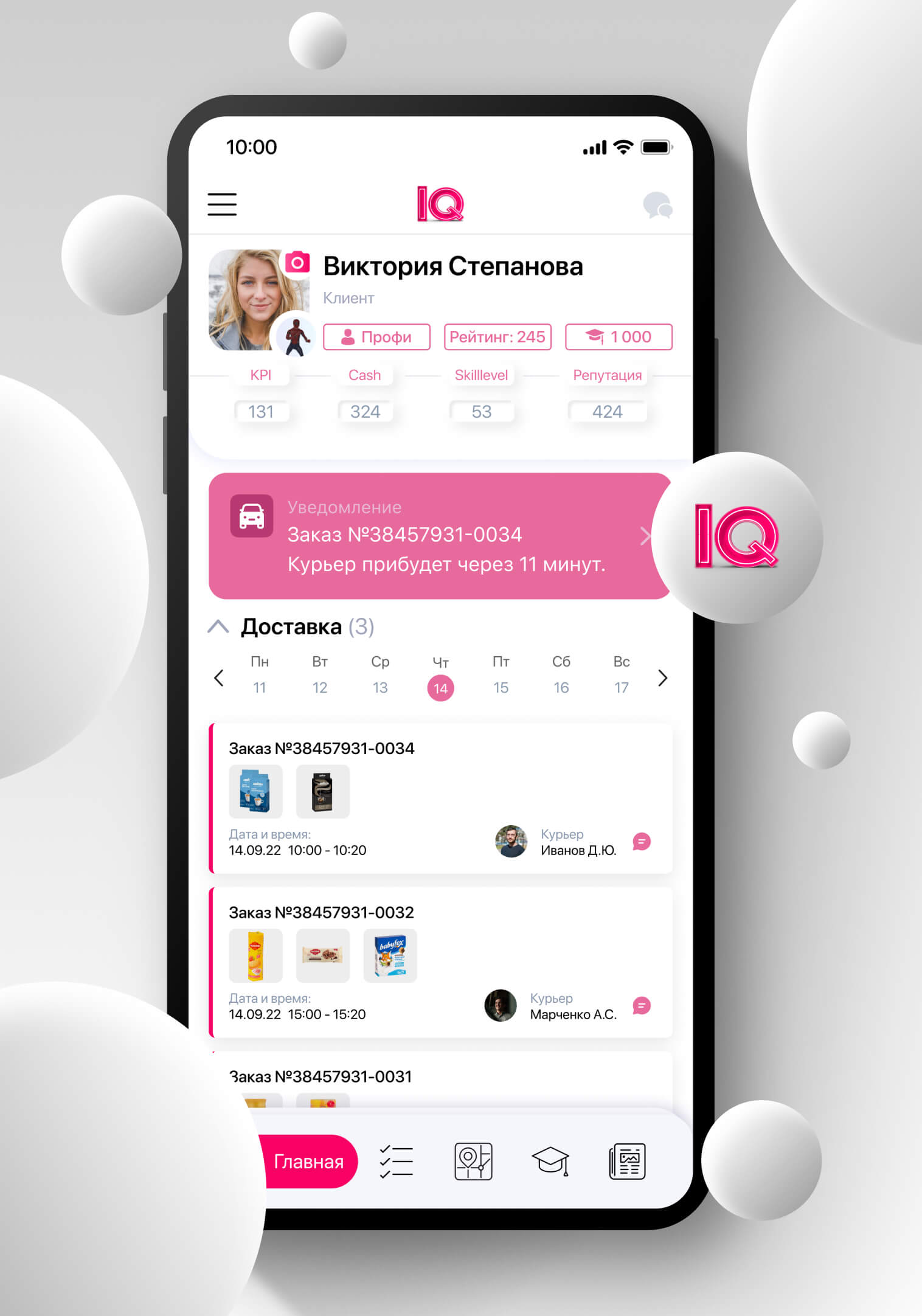 • Notification of the arrival of the courier / field employee of the partner company
