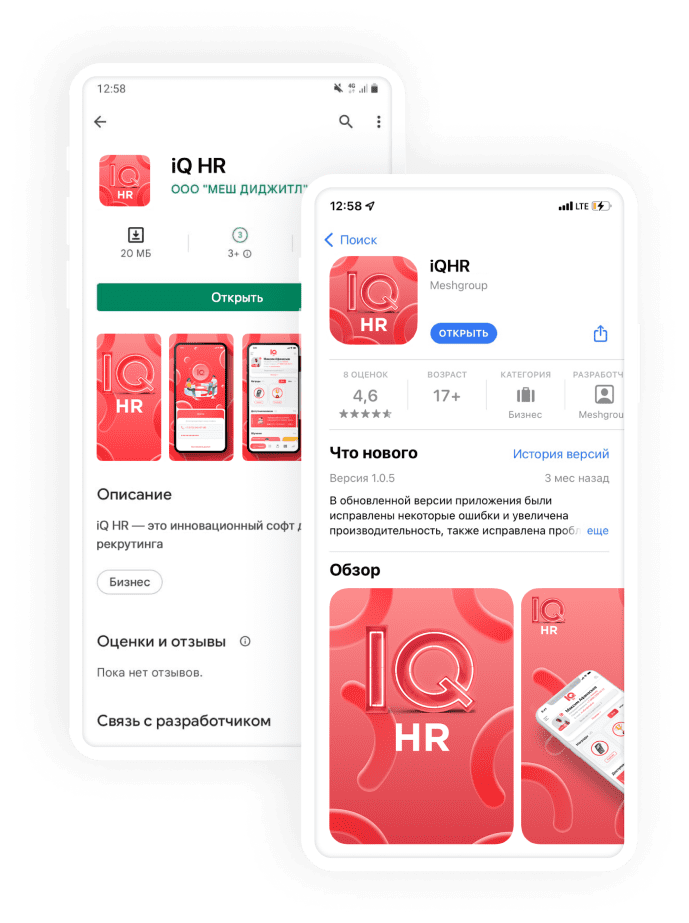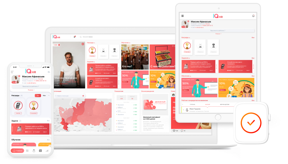 The boxed IQ HR solution is installed for the manager and his employees on all necessary platforms - web, adaptive, mobile application (IOS / Android). The platform is easily integrated with existing CRM systems (SAAS, ERP) or with the company's own CRM. Integration from 7 to 30 days, the application can also work offline.