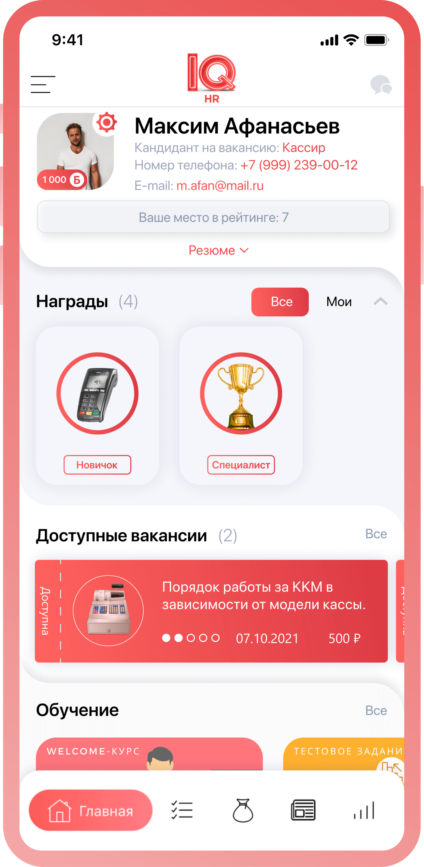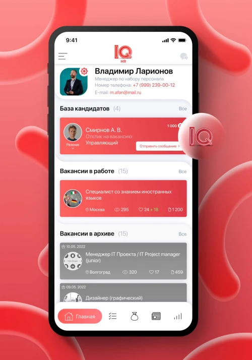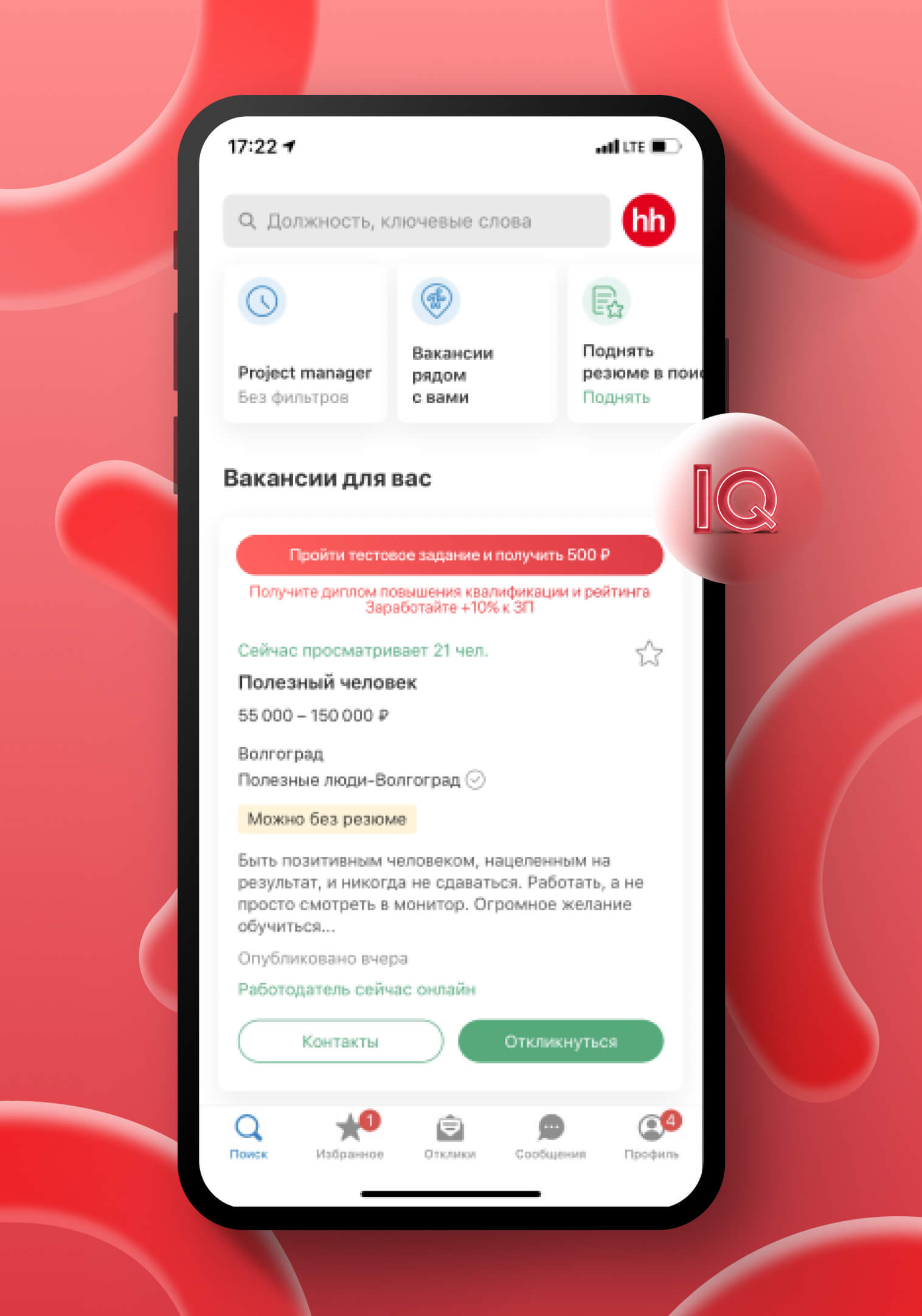 IQ HR is an innovative recruiting software that allows you to guide a job seeker through an automated funnel from applying for a job to applying for a job, without involving an HR specialist as much as possible. We fundamentally change the outdated approach to the selection of employees, allowing candidates to improve their skills in the chosen vacancy before starting work, giving a cash reward for the response and a 90% guarantee of employment if they successfully pass the auto-test.