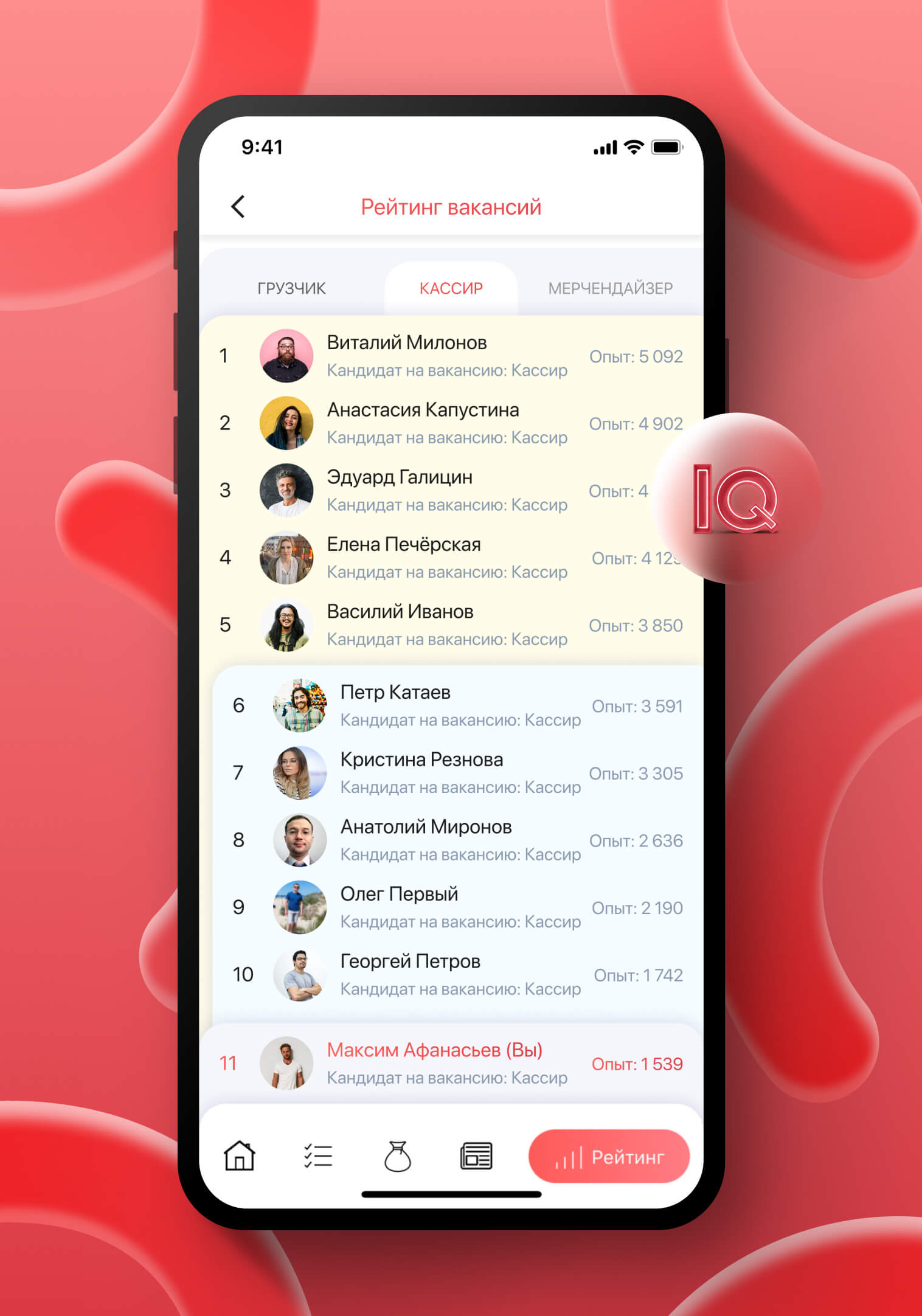 Artificial intelligence generates a ranking of the best applicants based on completed tests and training courses, creating a high demand for a vacancy among candidates and allowing only worthy candidates to be selected. A transparent system of ranking and motivation allows you to avoid "pull" when applying for a job.