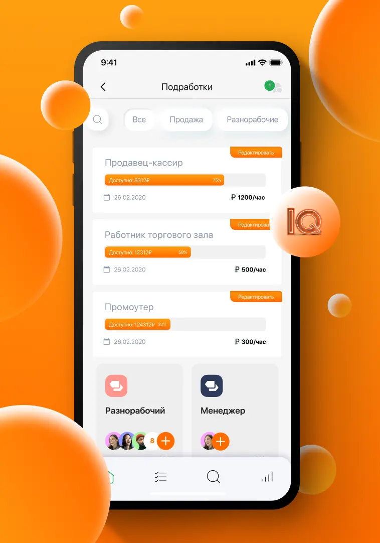Вы можете 24/7 держать руку на пульсе и оперативно управлять ставкой руб./час по каждой подработке, регулируя поток соискателей под текущие потребности и выбирая лучшие предложения агрегатора. После успешного выполнения доступных заданий отработанные часы суммируются и оплачиваются. Удобный вывод средств на карту снимает вопросы бумажной волокиты.