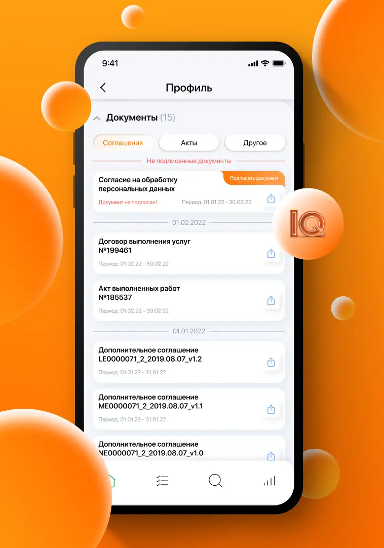 IQ JOB позволяет исполнителям самостоятельно загружать на платформу все необходимые для трудоустройства документы (паспорт, СНИЛС, ИНН, диплом об образовании). Вся документация также подписывается прямо в приложении — через простую электронную подпись (через SMS). Загруженная и подписанная документация синхронизируется с 1С работодателя.