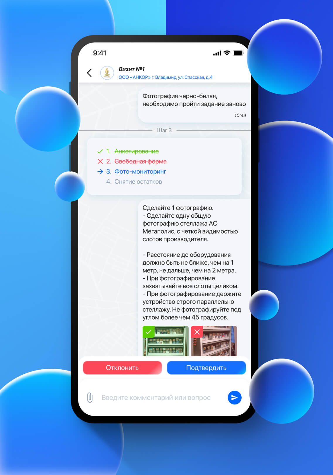 Для оптимизации штата торговых агентов нами был разработан комплексный модуль, сочетающий делегирование части задач торгового агента на сотрудников торговых точек и искусственный интеллект. Для этого нами была разработана инновационная биржа заданий на основе AI, позволяющая ставить задания напрямую работникам магазинов, а также обучена нейросеть для распознавания на фото представленных в портфеле ГК «Мегаполис» SKU, их расположения и количества. В совокупности это позволило в 3 раза оптимизировать работу штатных сотрудников клиента, а также значительно снизить издержки на мерчендайзинг и снятие остатков.