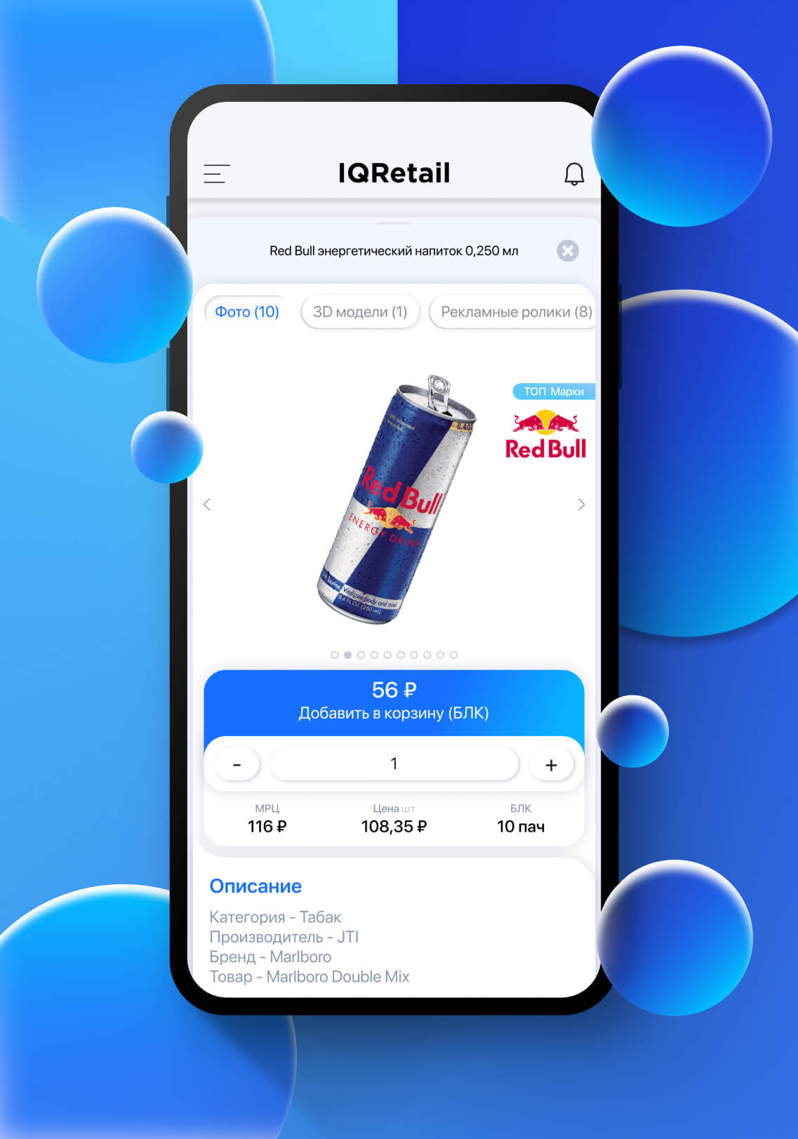 IQ Retail — это закрытый инновационный B2B маркетплейс для внутрикорпоративного использования крупными игроками сектора ритейл: производителями, дистрибьюторами и торговыми точками. Платформа позволяет контролировать и управлять продажами товаров до конечного покупателя.