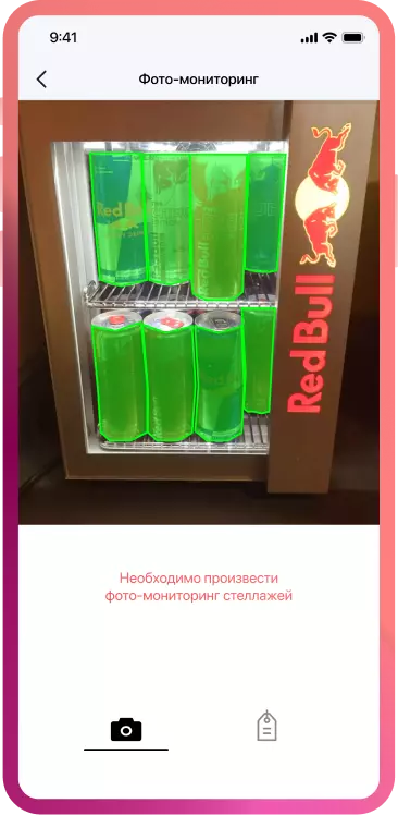 Photos/videos of shelves with products taken by employees are processed by the system for compliance with the specified parameters and to exclude forgery.