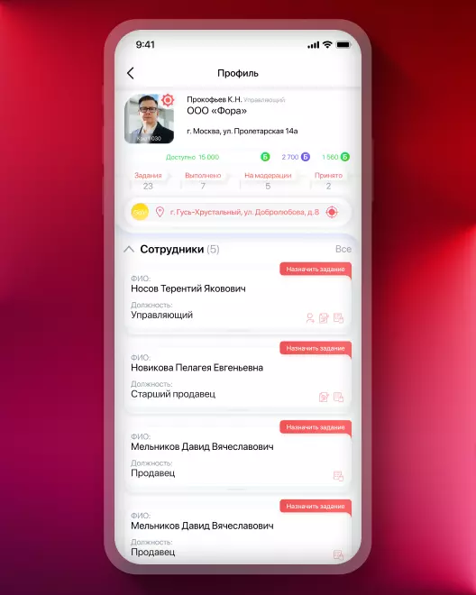 • Flexible system for obtaining analytics and building reporting on the completion of tasks by field employees and employees of retail outlets