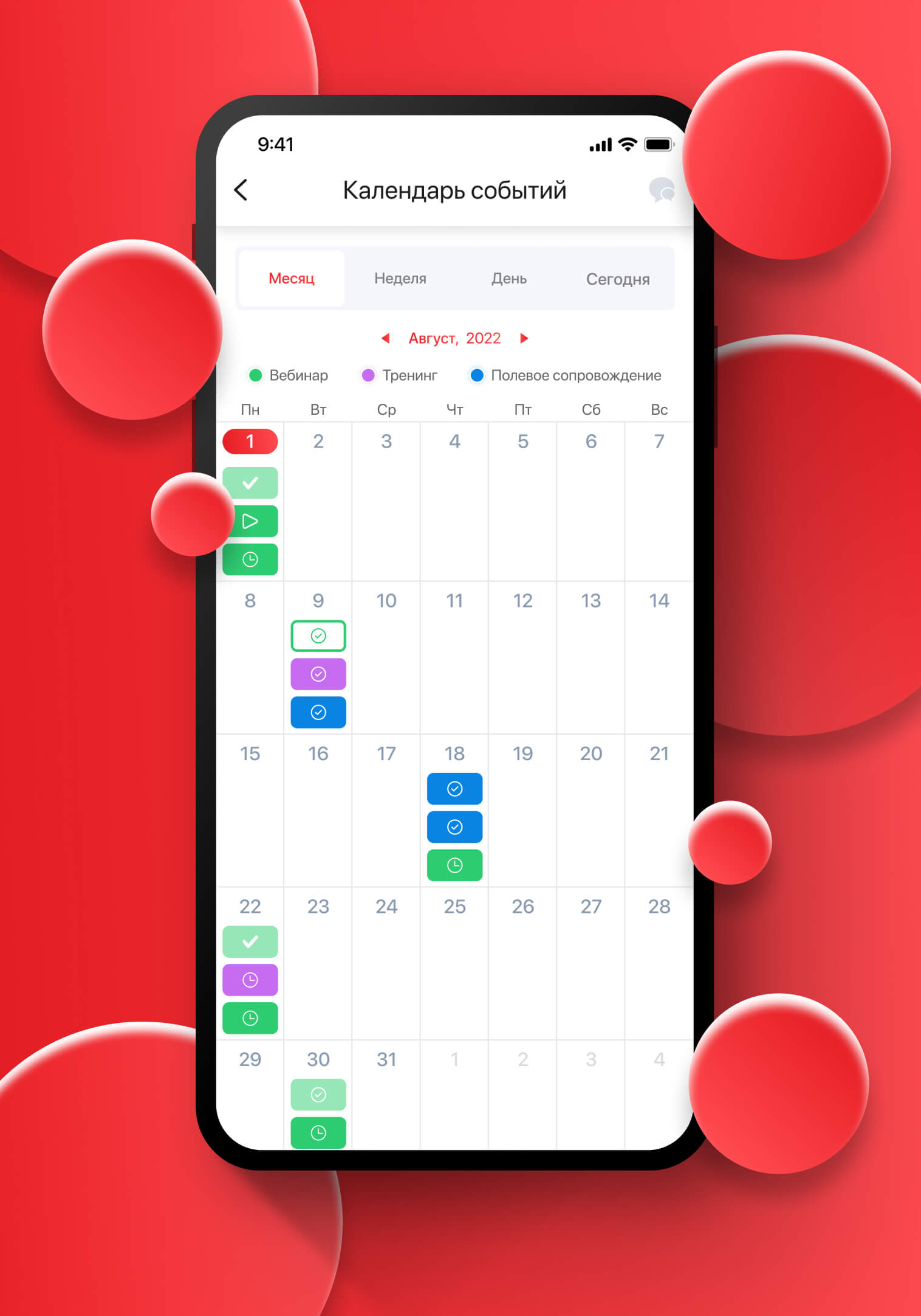 Интерактивный календарь, автоматически фиксирующий назначенные сотруднику задачи. Гибкая настройка push-уведомлений синхронизируется с отмеченными в календаре тайм-слотами и напоминает о ближайших событиях и дедлайнах.